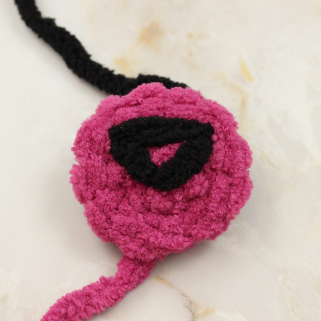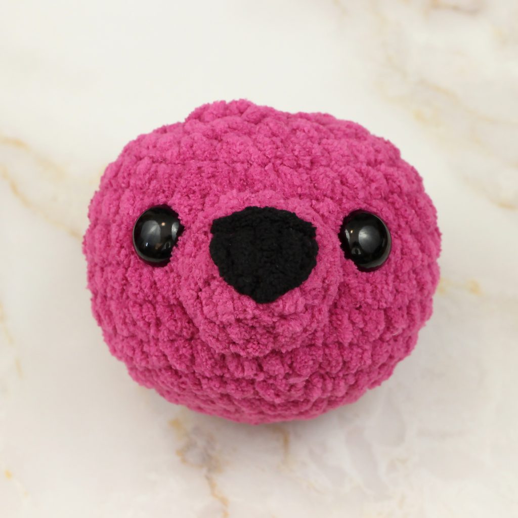 Round 2: 2 sc in each st around, invisible join to 1st st of round and fasten off leaving enough yarn to sew the nose to the head – 12 sc.